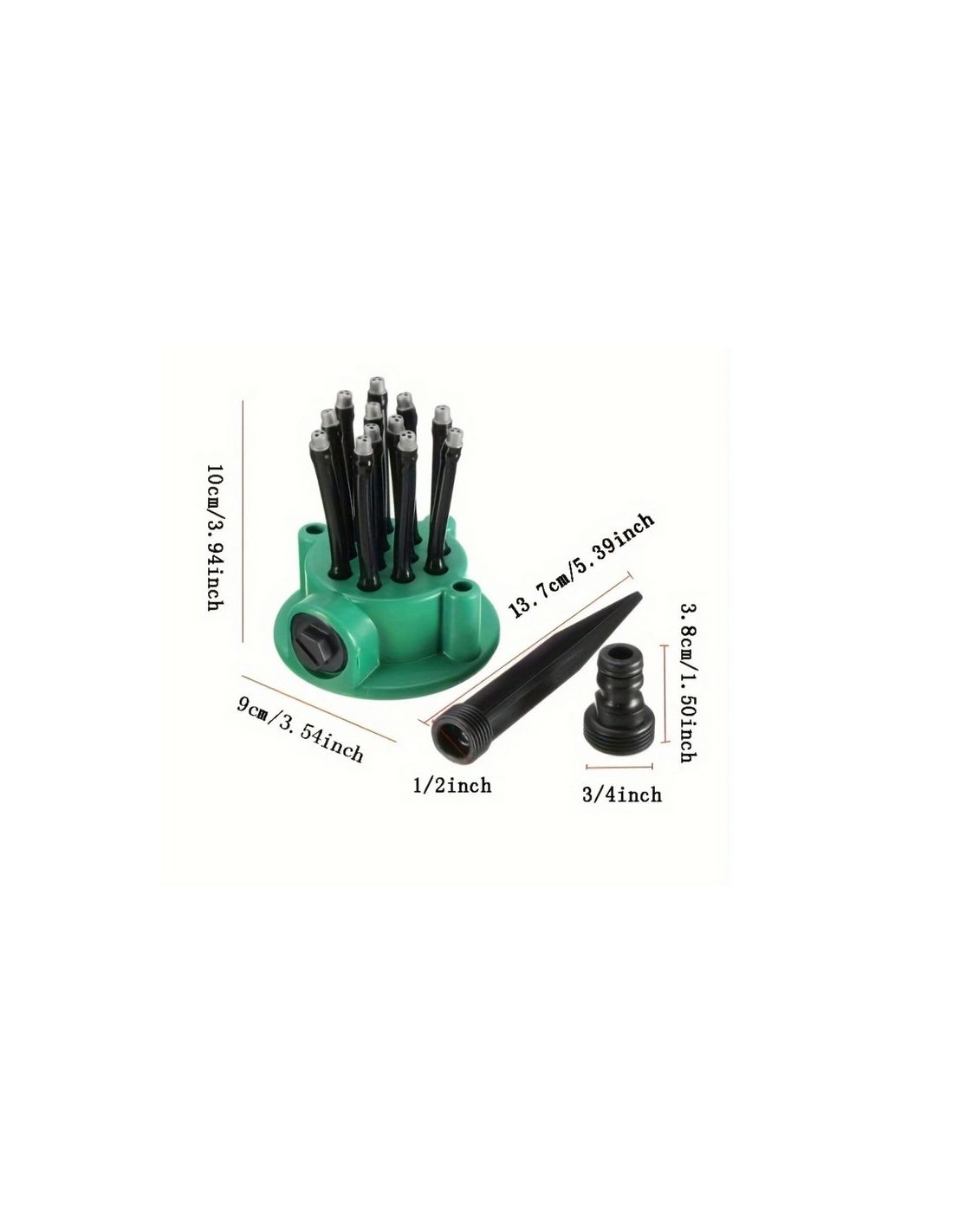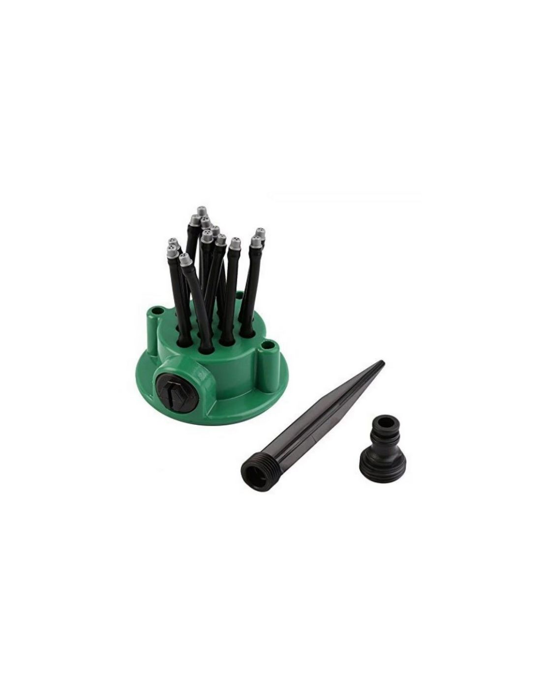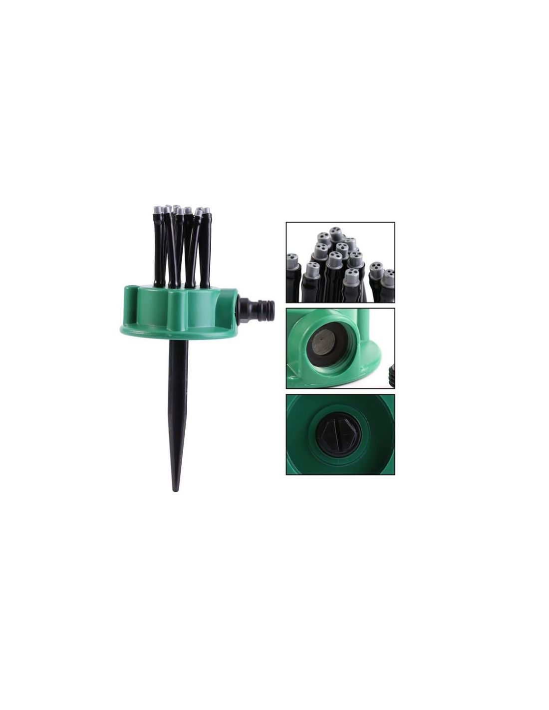 Aspensor gradina 360 grade, prevazut cu 12 furtuniri flexibile. Fiecare furtun are 3 orificii, acestea pot dispersa apa pana la 360 grade.
