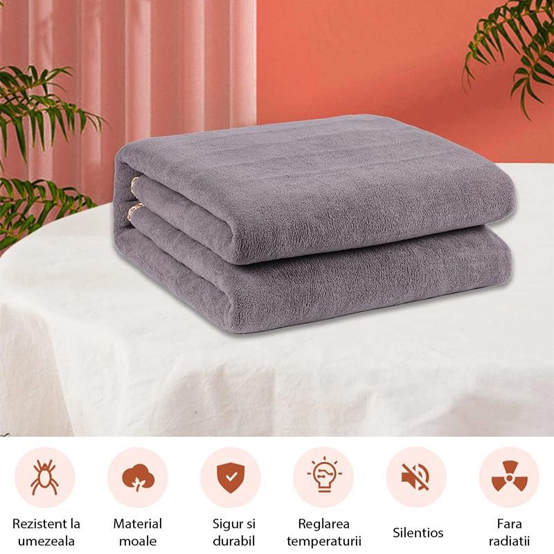 Patura pufoasa electrica 180 x 120 cm 100w, topper electric, patura incalzita Elastix