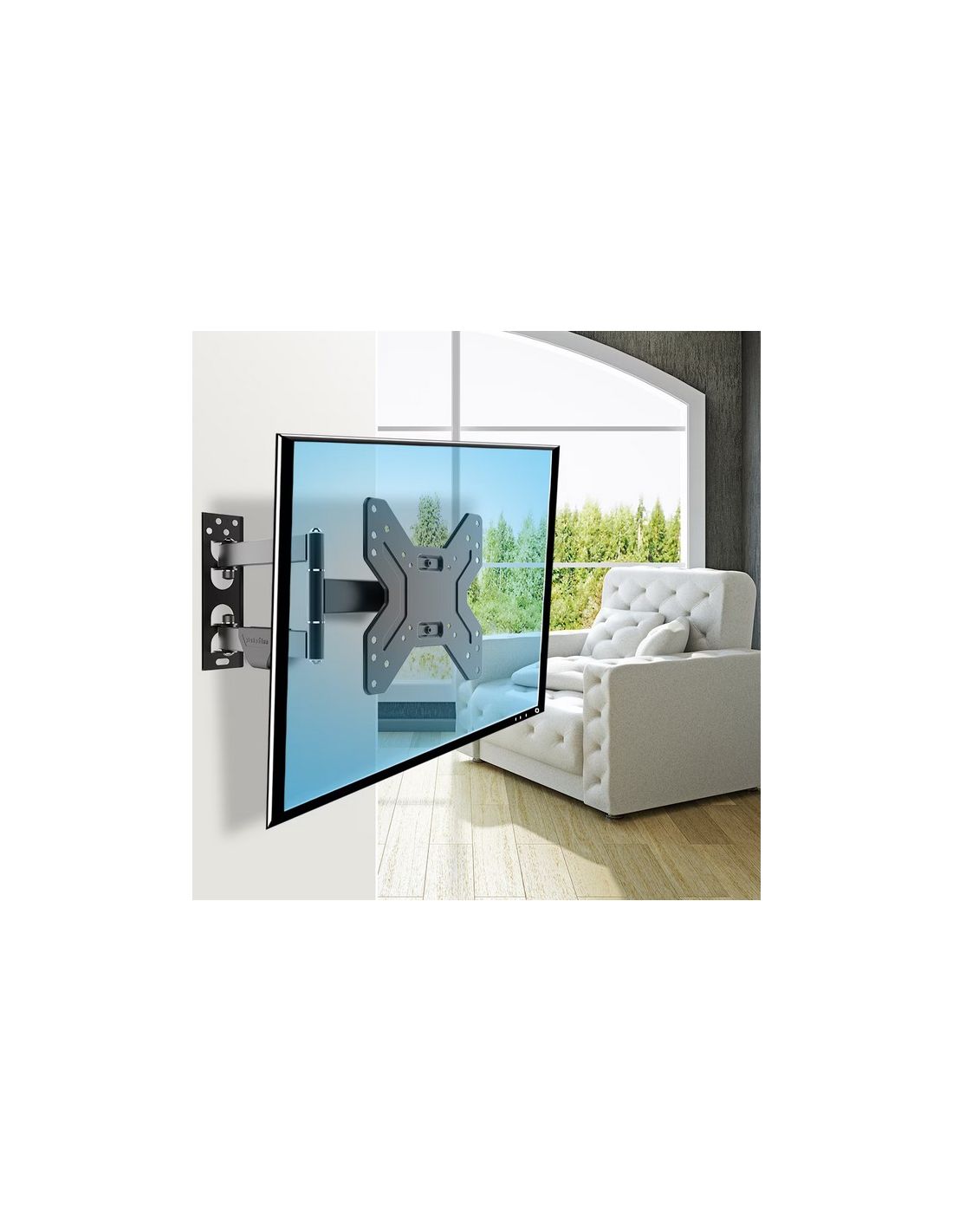 Suportul TV proiectat montarii pe suprafata verticala a peretelui, este in acelasi timp si rabatabil permitand pozitionarea televizorului/monitorului in unghiuri distante diferite fata de perete.
