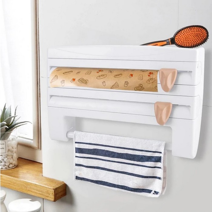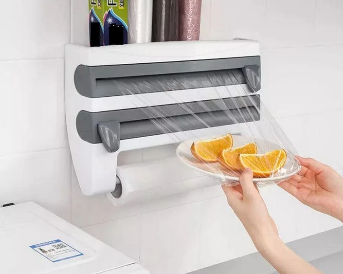 Organizator bucatarie, folie alimentara, rola hartie si condimente