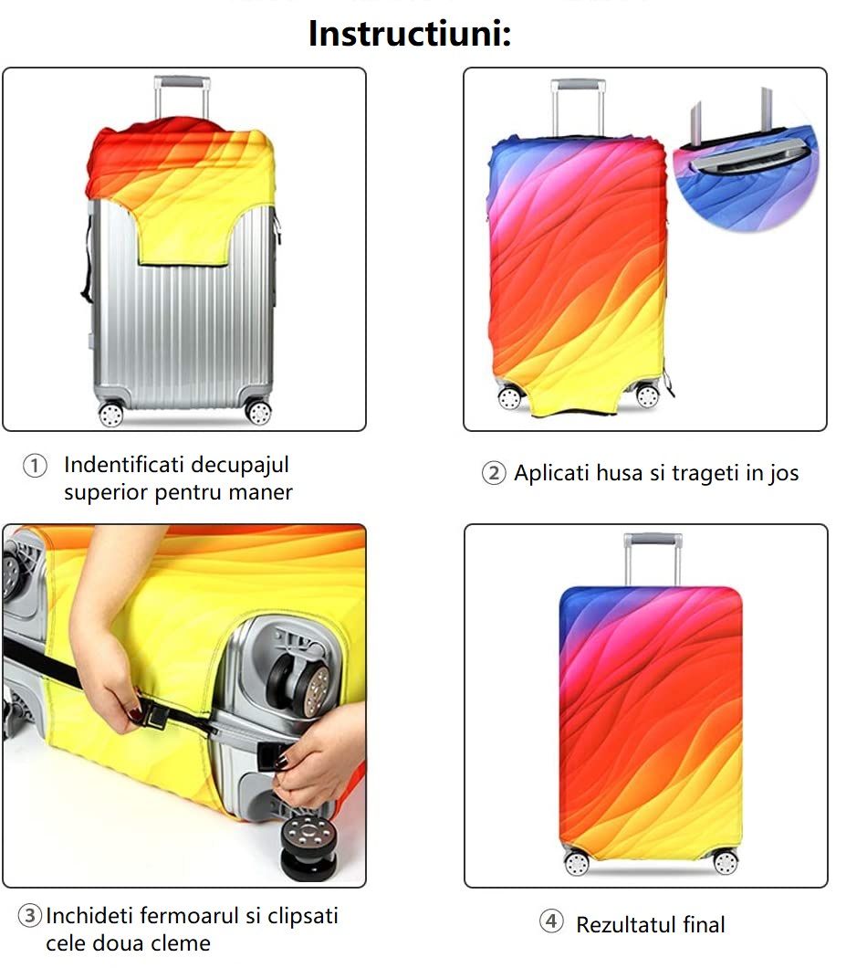 Prevazuta cu decupaje pentru rotile, manere, fermoar, elastic.