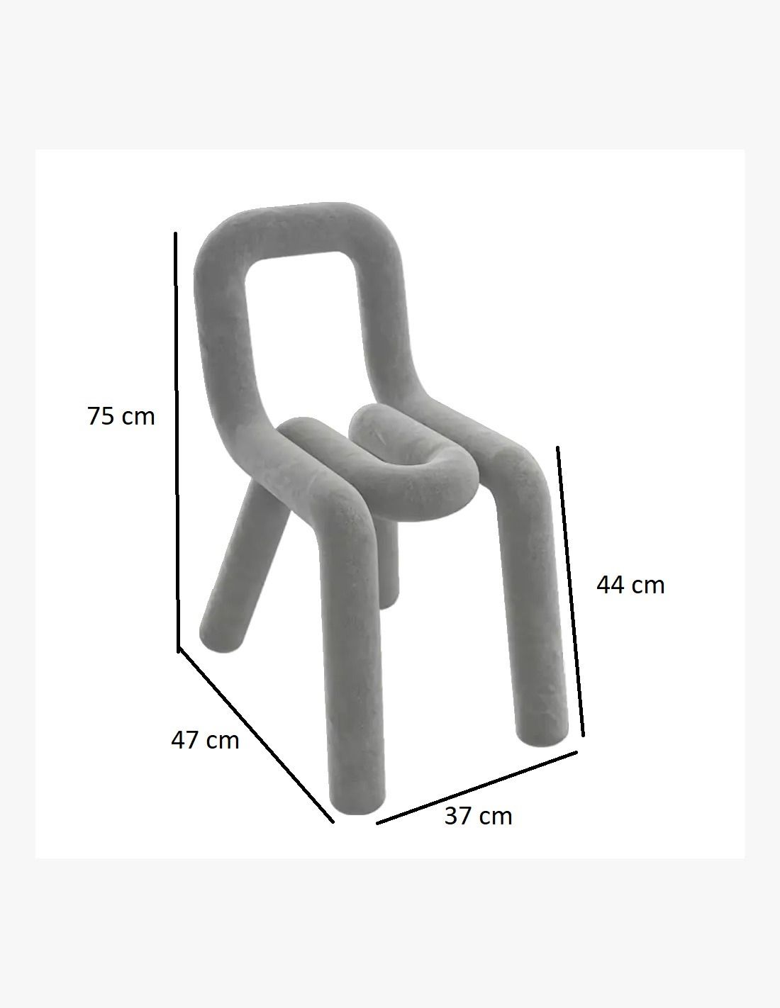 Scaun minimalist cu design modern si abstract, realizat din tuburi netede si curate ce formeaza o structura continua. Scaunul este disponibil pe culoarea gri, albastru si portocaliu, creand un efect vizual placut si dinamic. Acest tip de mobilier este ideal pentru spatii creative sau ca piese statement in designul unui birou sau al unei locuinte. Materialele si finisajele utilizate sugereaza durabilitate si stil.